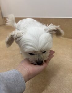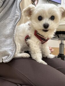 アピール成功のマロンちゃんはスタッフのお膝をゲット!!